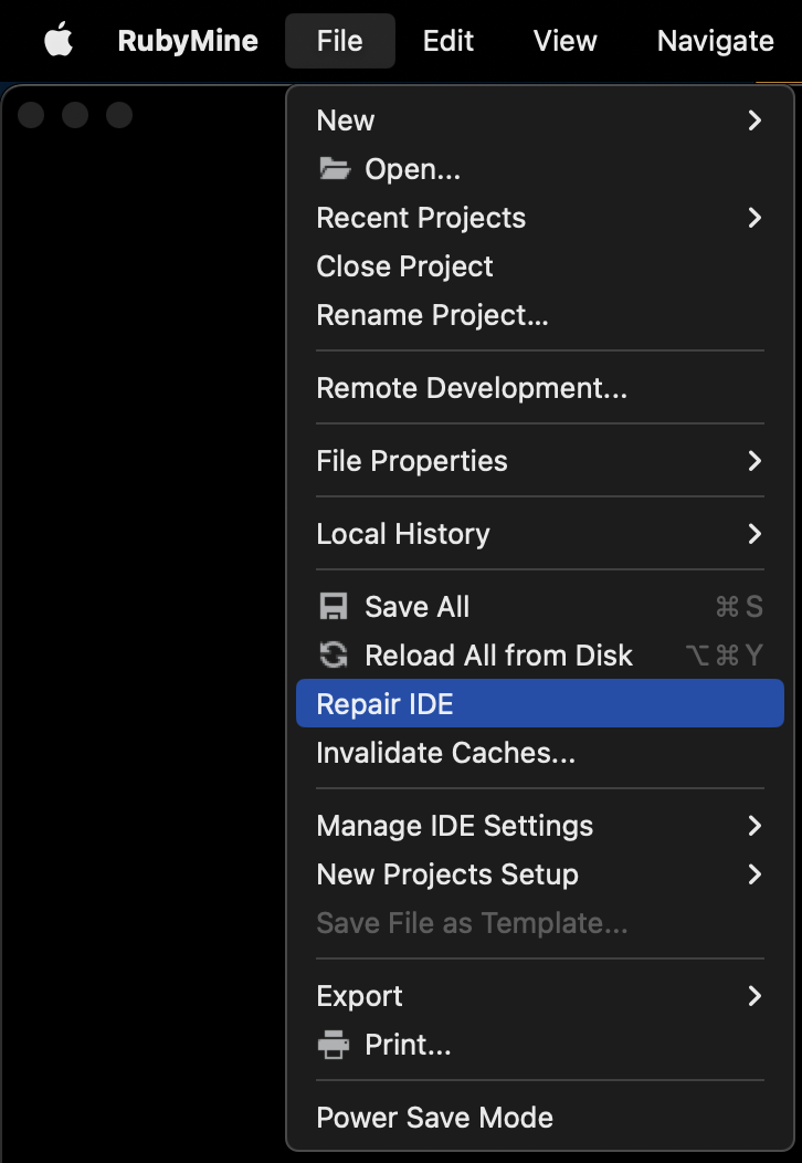 IntelliJ, RubyMine, Pycharm 등의 Jetbrains IDE를 사용한다면 공통적으로 IDE 설정값을 저장하는 .idea폴더가 생성됩니다. 문제의 현상은 .idea 폴더 안의 설정 값이 깨졌을 경우 발생합니다. 폴더를 삭제하고 다시 IDE를 실행하면 자동으로 .idea 폴더를 새롭게 다시 구성하는데 이 방법을 활용해 설정파일을 복원합니다.