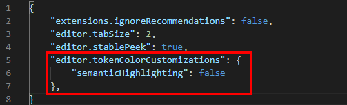 어느 날 갑자기 에디터에서 낯선 느낌이 드는 거 같아서 보니까... 위처럼 키워드의 색이 바뀐 것을 눈치챌 수 있었습니다. 아마도 VSCode 1.43 버전에서 Semantic Highlighting 세부설정 업데이트 이후 발생한 현상으로 보입니다. 찾아보니 이 부분 설정값을 바꿔주면 다시 해결할 수 있다고 하네요. 저는 console 글자 색이 초록색인게 더 가독성이 좋다고 느껴서 아래와 같은 원상 복구하는 작업을 진행했습니다.
