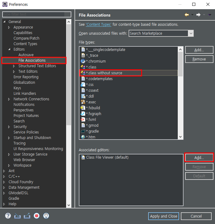 Eclipse Neon 버전부터인가 디컴파일러를 설치한다음 정상적으로 동작하지 않는 문제가 발생하기 시작했다. 아마도 Class Decompiler Viewer를 Default로 세팅하지 않았기 때문에 발생했을 가능성이 크다. Window > Preferences > General > Editors > File Associations 의 '*.class without source' 를 확인해보고 설정되어있지 않은경우 아래 소개하는 방법을 통해 설정을 변경해주면 해결할 수 있다.